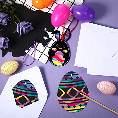 36pcs Arcobaleno Scratch Art Carta, Arte del Graffio di Pasqua, Scratch Art Pasqua, Set Artigianale di Carta Gratta e Vinci, Scratch dell'uovo di Pasqua, Decorazione Ciondolo Pasquale Artigianato (A)
