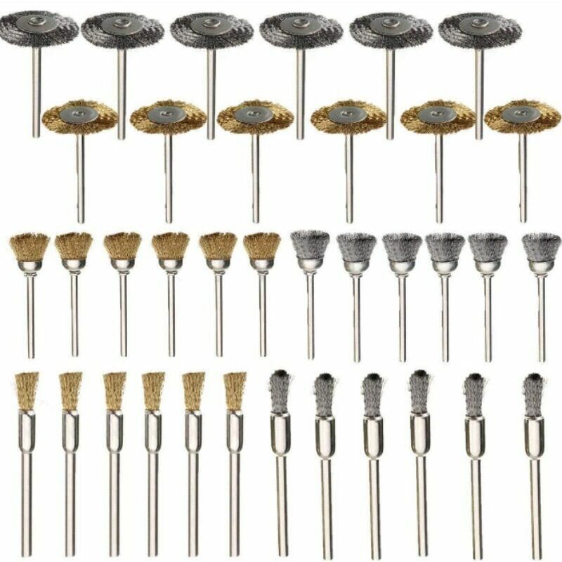Spazzola in ottone, 36 pezzi, ruote metalliche, spazzole, trapano, utensili rotanti, lucidatura, utensili rotanti Dremel Specifiche: Materiale: ottone Gambo: 3,0 mm Applicazione: adatto per la lucidatura di superfici metalliche, ruggine, ecc., Il pacchetto include: Ruota per lucidatura da 36 pezzi