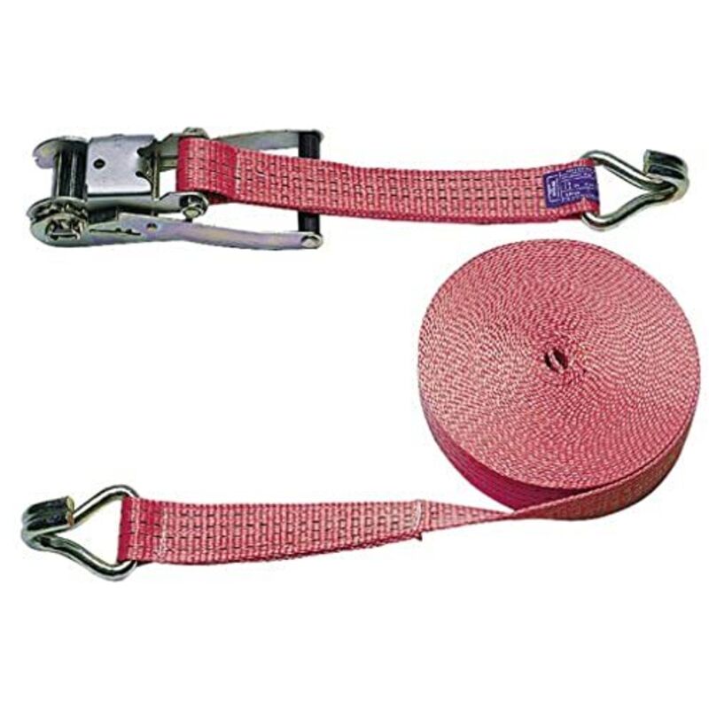 • Due pezzi con gancio a punta e cricchetto • Forza di trazione consentita vedere tabella • Tessuto in poliestere resistente • impregnato in PU per una migliore protezione UV • Certificazione GS secondo DIN EN 12195-2.