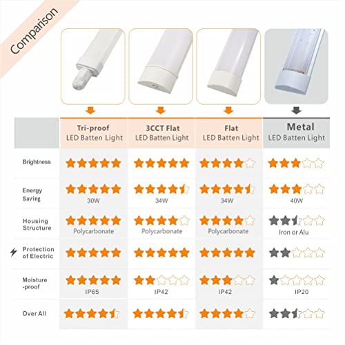 Luce LED per Tubi, 1.2m 3750lm 34W 3CCT (3000 K/4000 K/6500 K) In un Unico Supporto Da Parete a Scelta Per Armadio Cucina Garage Capanno (120 cm)