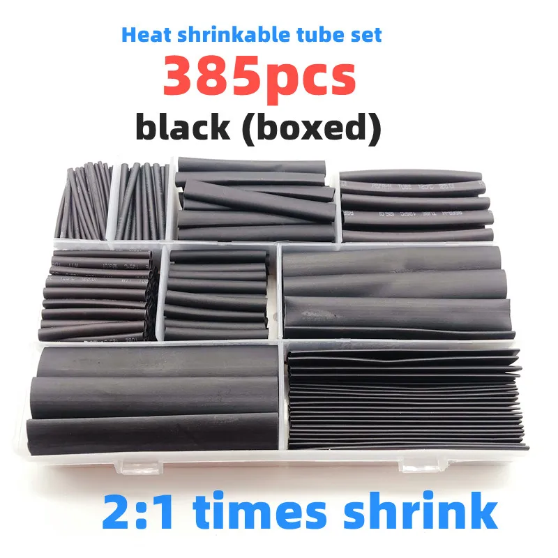 385pcs(boxed) heat shrinkable sleeving 2:1 black electronic DIY Kit insulated polyolefin sheathed shrink sleeve cables andCable