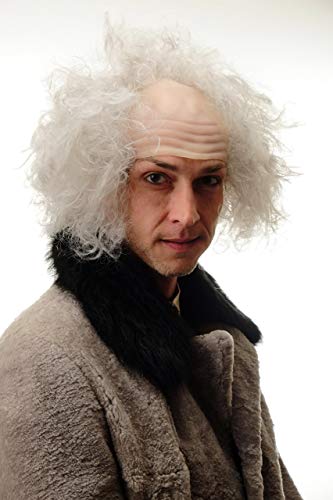 WIG ME UP -3893-P68A Parrucca Mezza pelata Uomo Carnevale Halloween Vecchio Nonno Pazzo Professore Scienziato Einstein Civetta Grigio