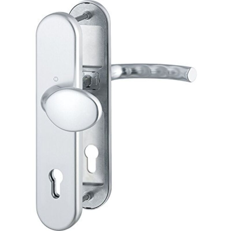 Maniglia e Lang, senza segno approccio 18 mm,/materiale: alluminio/superficie: argento anodizzato/segno esterno (mm): 54 X 250 X 12/interno segno (mm): 54 X 250 X 10/Kern - Protezione: no/perno (mm): 8,5 rapidamente penna/Dimensioni (mm): pulsante: 90 X 50/spessore della porta (mm): 67 - 72/foratura: PZ 88/classe di protezione a norma EN 1906: 3/esame fuoco: norma b3859/test: RC2 en 1906/accessori di fissaggio: vite filettata M6/direzione: Universal/modello: tôkyô