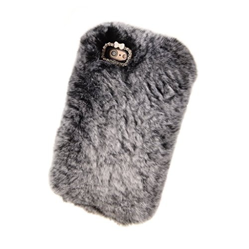 3D-foderina Youmai per mela iPhone 6/6S Plus, calda e morbida pelliccia sintetica, decorato con cristallo catena e fiocco piccolo