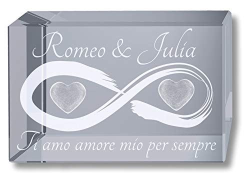Cristallo di vetro 3D 80x50x50mm inclusa incisione dei vostri nomi, anniversario e / o testi aggiuntivi senza costi aggiuntivi