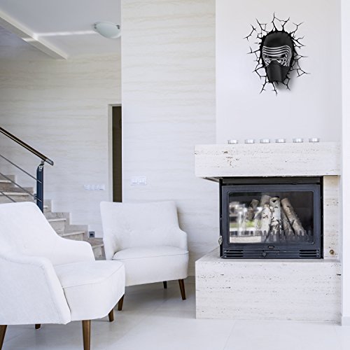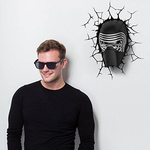 3DLIGHTFX Lampada da Parete Notturna per Camera Bambini, Luce a LED 3D FX, Motivo: Kylo Ren (Star Wars), con spegnimento Automatico e Adesivo per Fissaggio al Muro