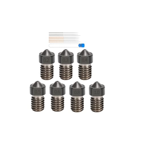 3Dman 7pcs V6 Hardened Steel Nozzles 0.2mm 0.3mm 0.4mm 0.5mm 0.6mm 0.8mm 1.0mm + 7pcs Cleaning Needles for E3D Hotend 3D Printers