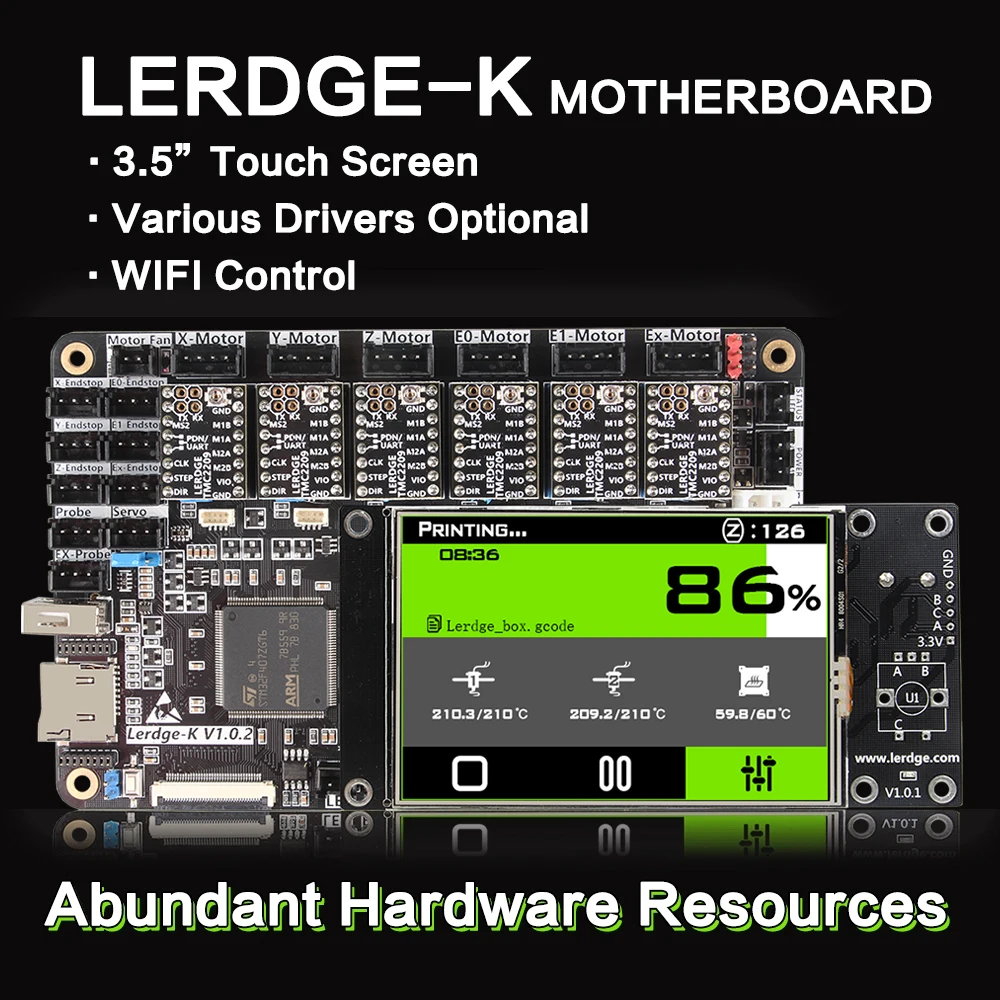3DSWAY 3D Printer Motherboard LERDGE-K ARM 32Bit Controller Board with 3.5" Touch Screen DIY Parts WIFI Control Mainboard