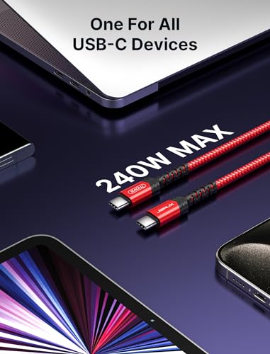 Cavo USB C a USB C [3M/10FT], Jsaux (20V/5A 100W) USB-C a USB-C PD Cavo dati di ricarica veloce con chip E-Mark compatibile con MacBook, MacBook Pro, Sumsung S20 S20+ Ultra, Pixel ecc-Rosso