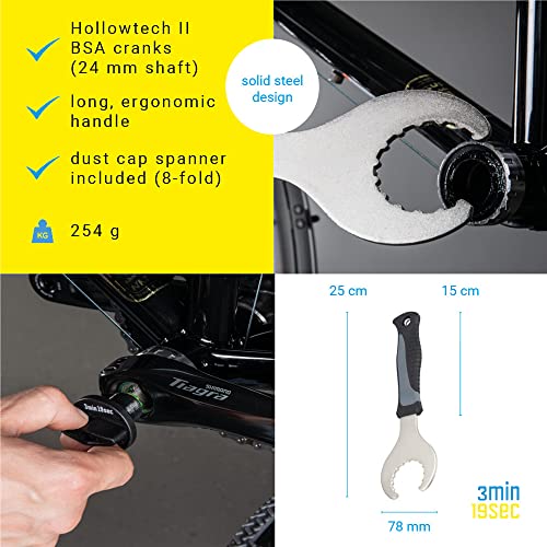 3min19sec Utensile per Movimento Centrale Shimano Hollowtech II - Utensile per Movimento Centrale BSA con Perno 24 mm - Chiave in Acciaio per Movimento Centrale e utensile per Viti della guarnitura