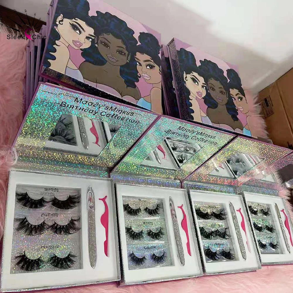 3Pairs 6D Faux Mink Eyelashes Wholesale Natural False Eyelashes Set Eyeliner With Tweezer Fake Eye Lashes Mink Lash Vendors