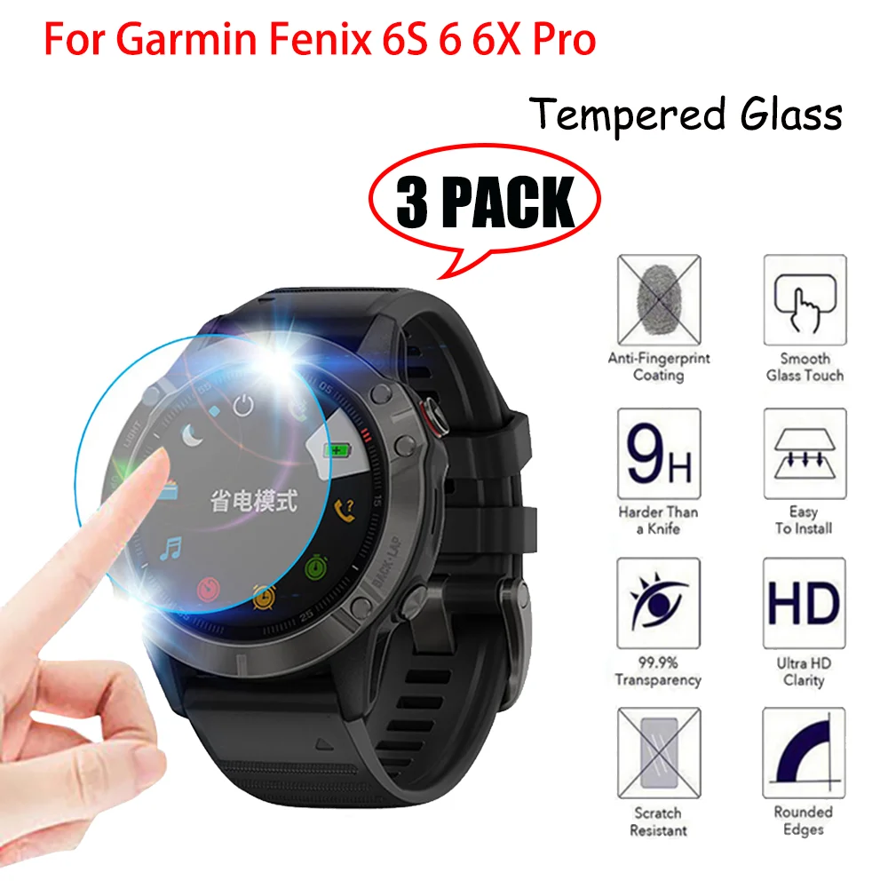 3pcs/lot Tempered Glass Clear Protective Film For Garmin Fenix 6 6s 6x Pro Sloar Fenix6 Watch Screen Protector Cover Protection
