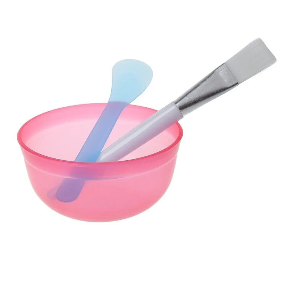 3pcs/set Portable Plastic Facial Mask Bowl Stick Brush Set DIY Mixing Applying Facial Care Makeup Beauty Tools Kit Color Random