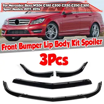 3piece W204 Car Front Bumper Splitter Lip Spoiler Diffuser For Mercedes For Benz C CLASS W204 C180 C200 C220 C250 C300 2011-2014
