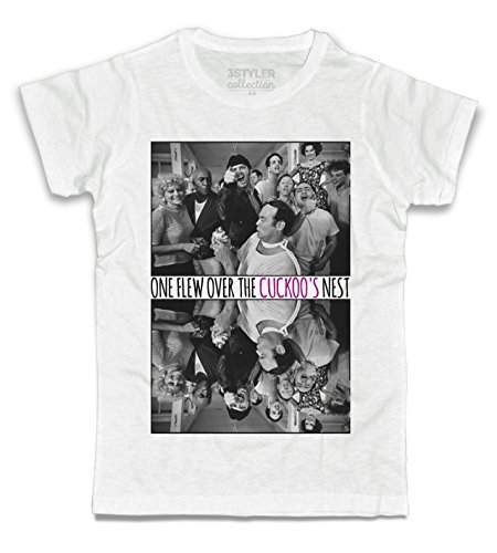 3stylercollection T-Shirt Uomo Bianca Qualcuno volò sul Nido del cuculo - One Flew Over The Cuckoo's Nest 2