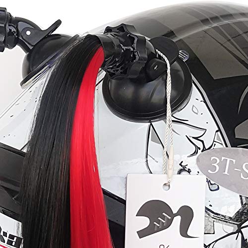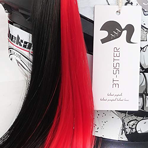 3T-SISTER Casco a coda di cavallo con coda di cavallo, con ventosa, decorazione per capelli per moto e bici, 2 pezzi, 35,6 cm (nero rosso)