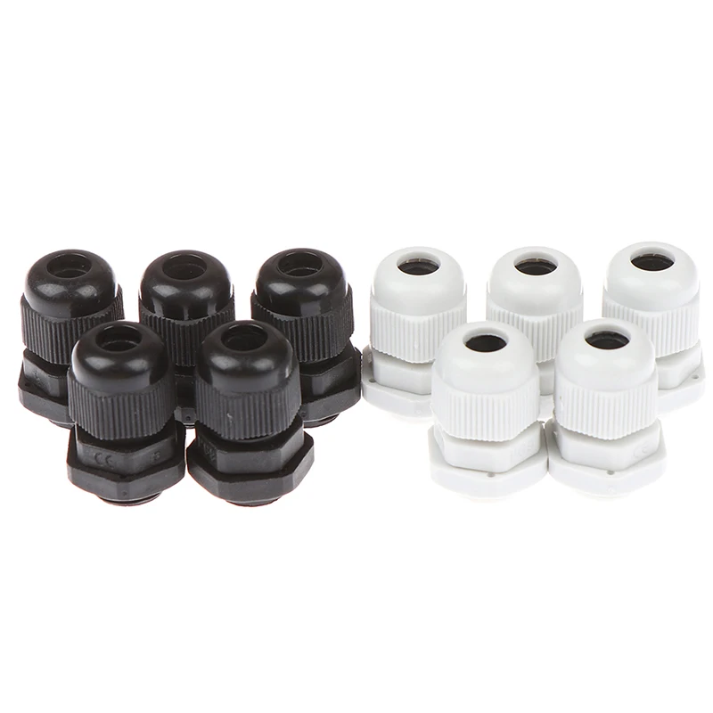 PG9 For 4-8mm Wire Cable White Black Waterproof Nylon Plastic Cable Gland Connector 5pcs