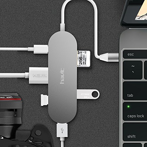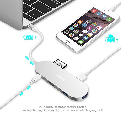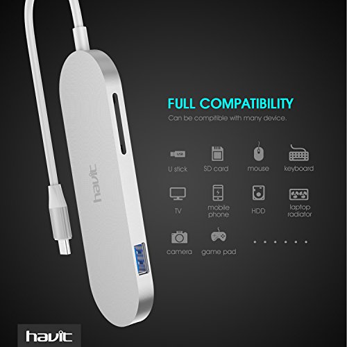4-in-1 USB C Hub, HAVIT USB 3.1 Type-C Shuttle with 4K HDMI Output +PD + SD Card Reader + 3x SuperSpeed USB 3.0 Ports (TPC68)