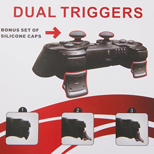 Aggiungi un po maggiore stabilità e comfort Il vostro game play con i controller dual Trigger e bonus cappucci in silicone per la PS3 Dual Trigger per controller PS3 che offre maggiore presa, comfort e effetto leva per gamer, squisito e durevole per uso a lungo