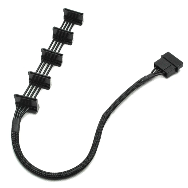 4-Pin IDE 1to 5 SATA SATA Power Cable Adapter Splitter Cables 18AWG Black Sleeved 40cm For PC Server