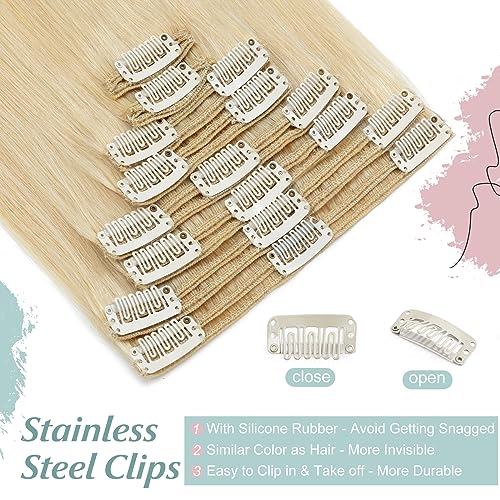 40-56cm Extension Capelli Veri Clip 8pz Remy Umani Double Weft Testa Piena Resistente al Calore - 613# Biondo Chiarissimo, 40cm