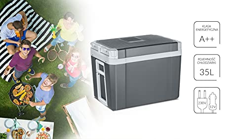 MPM 40-CBM-10Y Frigorifero Portatile da Viaggio Termoelettrico con Ruote 35 Litri AC/DC 12V / 220V, Per Auto, Campeggio, Modalità ECO, Grigio