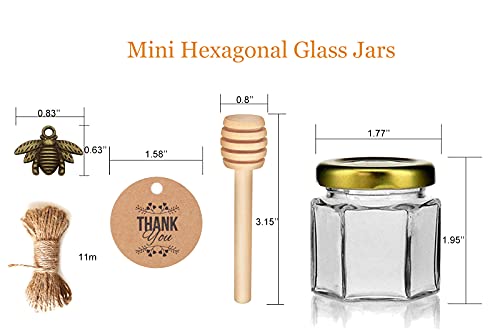 40-Count 1,5 oz mini vasi di miele di vetro esagonale-piccoli con Dippers, Charms d'api d'oro, biglietti di ringraziamento, sacchetti regalo e nastro oro di seta-