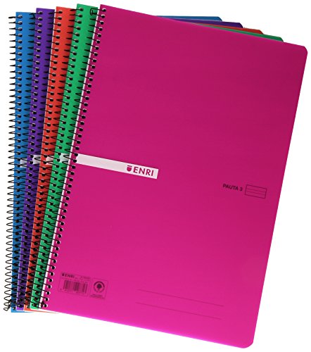 Enri 400043836 - Confezione da 5 quaderni a righe con spirale semplice, modello 3, copertina in plastica