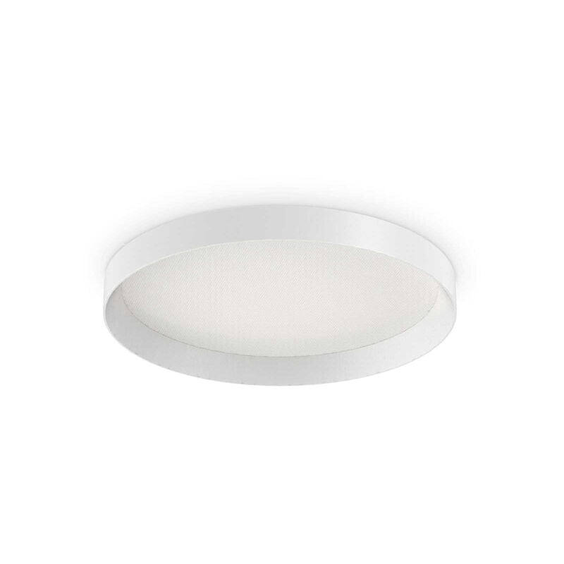 Collezione Fly FONTI LUMINOSE ADATTE AD OGNI AMBIENTE Plafoniera con base circolare diam.35 cm con luce Led 18 W.. Corpo luce in alluminio verniciato a polvere in finitura bianco, ottica arretrata con diffusore in PMMA microprismatizzato con controllo dell'abbagliamento.