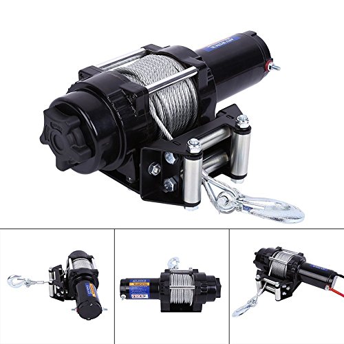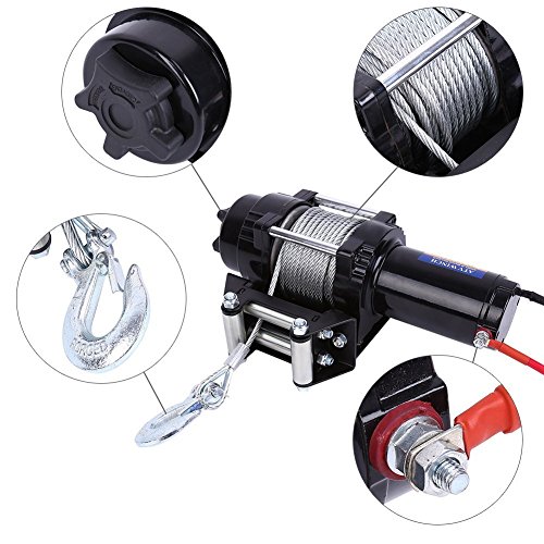 12 V 4000LBS - Treuil elettrico palano sollevamento, cavo in acciaio da 15 m, con telecomando senza fili, per manubrio di auto, camper, barca, camion, quad, mountain bike