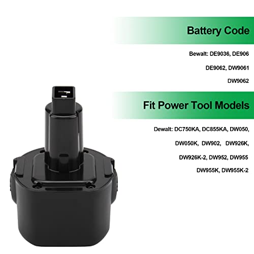 Compatibilità- -Batteria di ricambio per Dewalt DE9036, DE9061, DE9062, DW9061, DW9062 DC750KA, DC855KA, DW050, DW050K, DW902, DW926K, DW926K-2, DW952, DW955, DW955K, DW955K-2