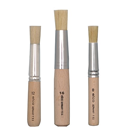 Elco 40037320 - Set di pennelli per stencil (setole corte, manico corto in legno, misura 8, 12 e 16)