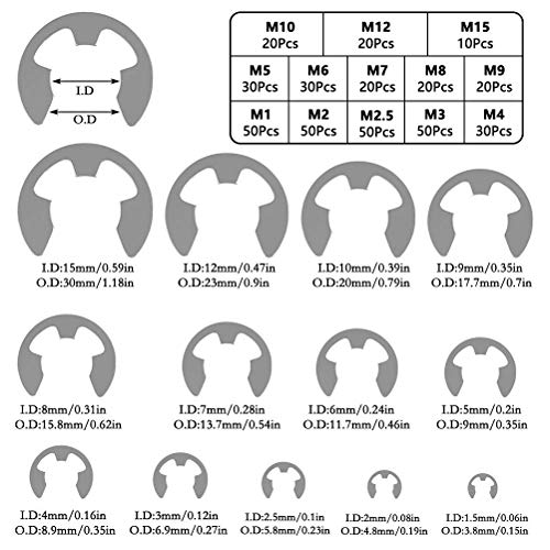 [13 diverse dimensioni] Include anello di uscita M1.5 - M15 13 diverse dimensioni e-clip, totale di 400 pezzi