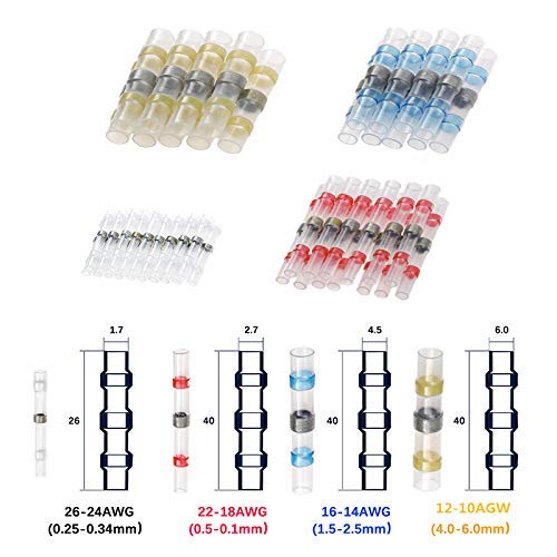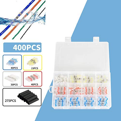 400Pcs Connettore termoretraibile Connettore a saldare impermeabile con guaina termorestringente, Connettore per filo sigillante per saldatura, terminale per filo isolato per autoveicoli