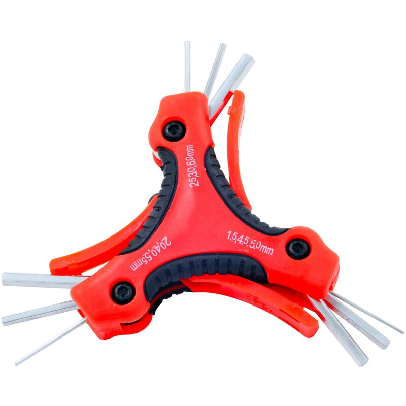 Rolson 40350 Folding Triangle Hex Key - 9 Pieces Manufactured from Chrome Vanadium steel,Ergonomic rubber cushion grip with keys that fold away for convenient storage,Sizes 1.5, 2, 2.5, 3, 4, 4.5, 5, 5.5, 6mm