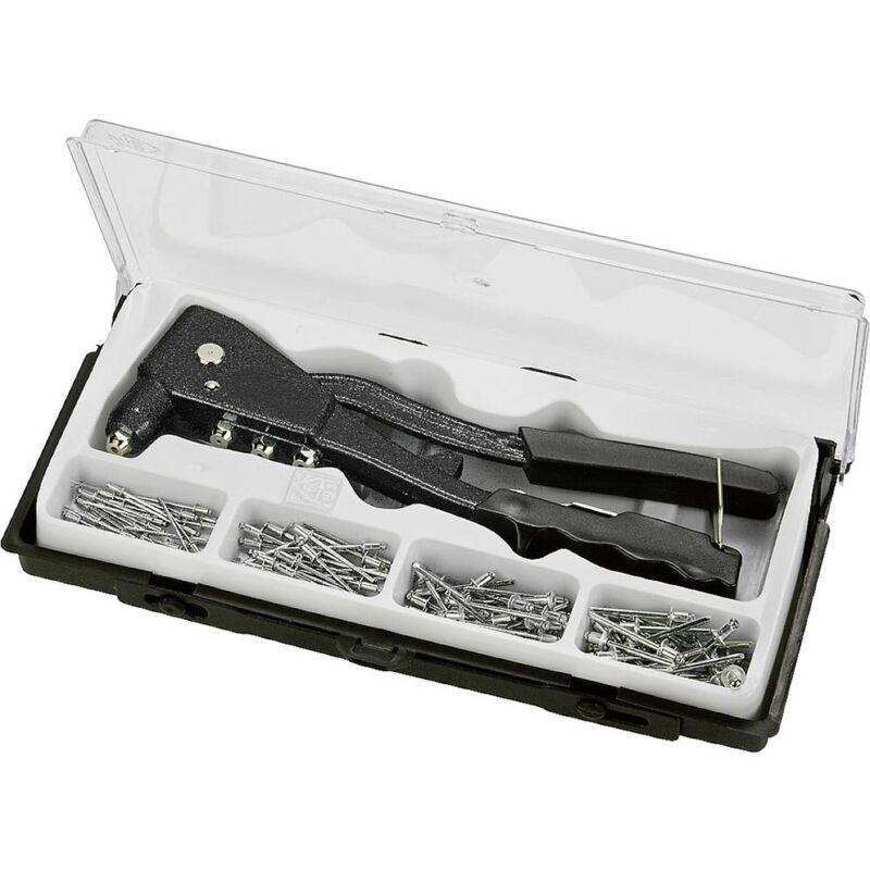 Dettagli tecnici Tipo prodotto Kit rivettatrice Kit rivetti ciechi Modello pesante con protezione dell'impugnatura, per rivetti ciechi in alluminio e rame fino a 4,8 mm di diametro dello stelo, da altri materiali fino a 4 mm di diametro dello stelo, incl. 100 rivetti nelle dimensioni: 25 rivetti 2,4 x 5 mm, 25 rivetti 3,2 x 8 mm, 25 rivetti 4,0 x 8 mm, 25 rivetti 4,8 x 8 mm. Testo tradotto automaticamente Punti di forza e dettagli Modello pesante con protezione dell'impugnaturaPer rivetti ciechi in alluminio e rame fino a 4,8 mm di diametro dello steloIn altri materiali fino a 4 mm di diametro dello stelo Incluso nella consegna null Requisiti di sistema null