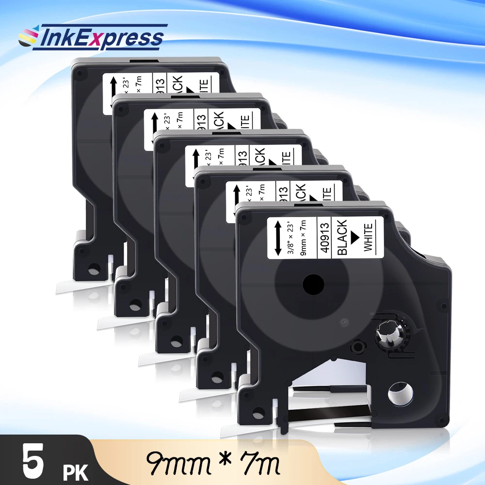 5PK 40913 Tape For DYMO D1 Tape 40913 Label Tape 9mm Black on White label Tape For DYMO LabelManager 160 280 LabelWriter 450 Duo