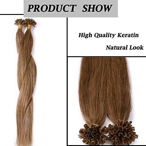 40cm-55cm Hair Extension Cheratina Capelli Veri Naturali 100% Remy Human Hair Pre Bonded U-tip Keratina Allungamento, 100 Ciocche - 18"-50g, 12 Marrone Chiaro