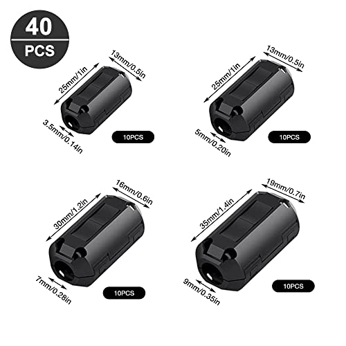 40pcs Nuclei di Ferrite, Ferrite Anello Nucleo, ferrite antidisturbo,Anti-Interferenza Alta Frequenza Filtro RFI EMI Soppressore di Rumore, per Cavo Video, Cavo coassiale, 3.5mm 5mm 7mm 9mm Nero