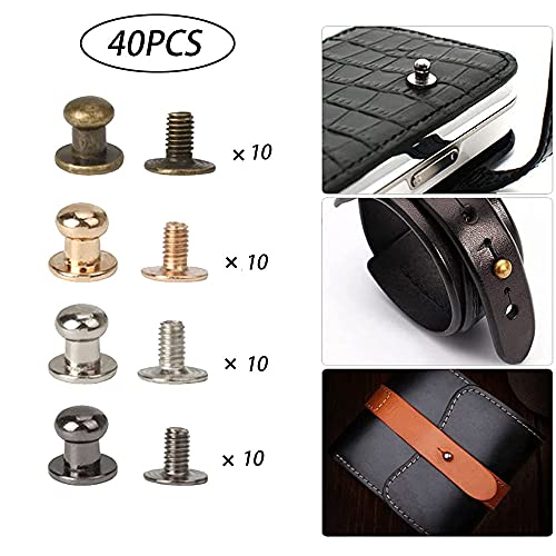 40Pcs Rivetti a Testa Tonda, Viti con Borchie in Metallo, Bottone per Rivetto in Pelle, con Strumento di Punzonatura da 3Pcs per Fai Da Te, Cintura, Portafoglio, Giacca, 8x6 mm