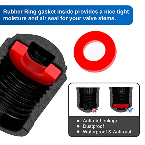 ▶ Cappucci Antipolvere con Anello in Gomma O ▶: I tappi per valvole sono dotati di guarnizione O-ring in gomma all'interno che fornisce una tenuta migliorata per aiutare a prevenire perdite d'aria e per tenere adeguatamente fuori polvere, sporco, sporcizia e detriti stradali, che prolungano la durata dello stelo della valvola.