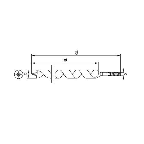 ENT 41040 Trapano per serpentino, Acciaio per utensili, diametro (D) 16 mm, NL 390 mm, GL 460 mm, S 12 mm esagonale