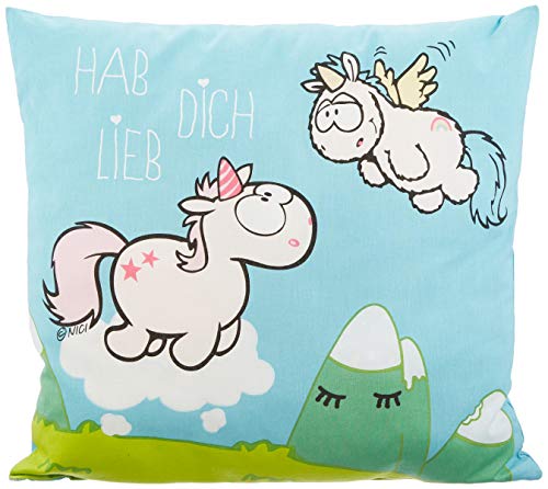 NICI 41248.0 Cuscino dell'unicorno Theodor con Scritta in Lingua Tedesca HAB Dich Lieb, in Cotone Stampato, Dimensioni: 37 x 37 cm