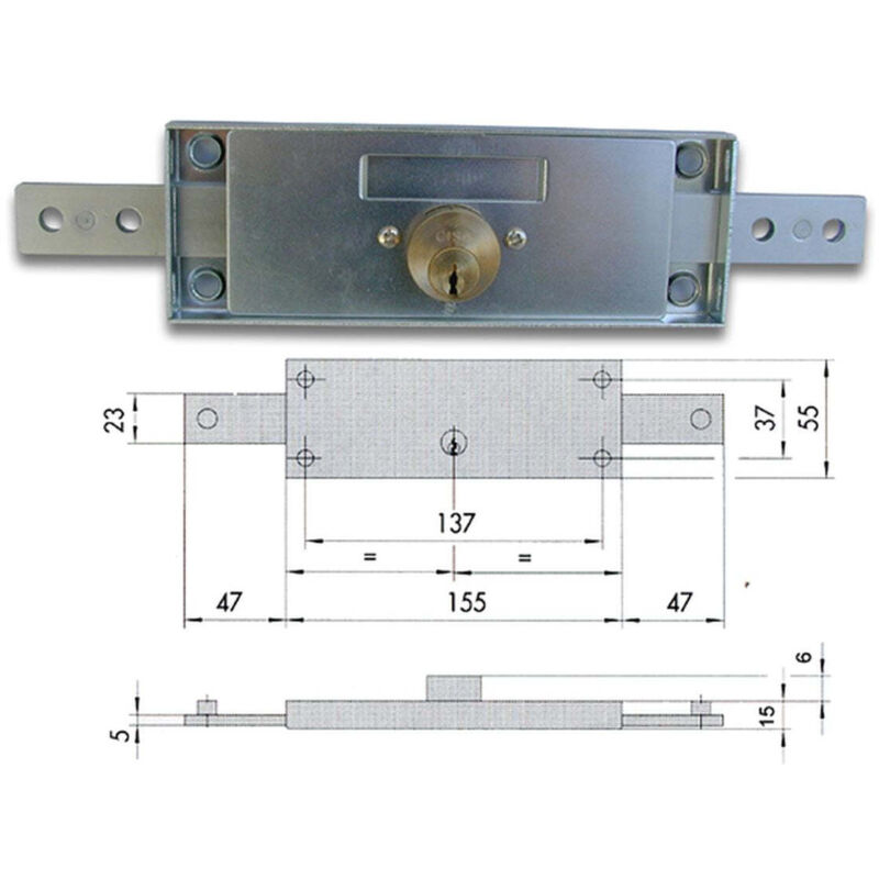 Articolo 41510.78 centrale, catenacci a 2 mandate. Cilindro ottone fisso. Scatola mm 155x55