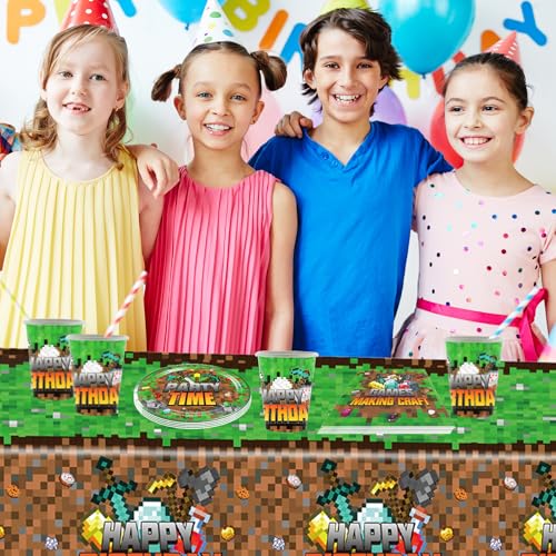 41Pcs Stoviglie per Feste da Videogiochi, Set di Stoviglie per Feste di Compleanno per Bambini, Piatti di Carta, Tazze, Tovaglioli, Tovaglia, Stoviglie per Feste Festa Decorazioni Set per 10 Ospiti