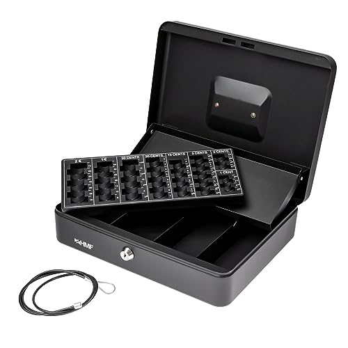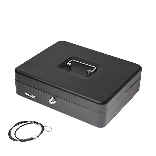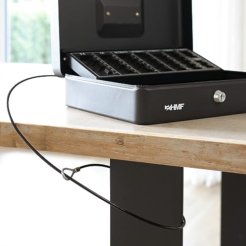 HMF 42151-02 - Cassetta portavalori con serratura con contatore monete e cavo di sicurezza, 30,5 x 24 x 9 cm, colore: Nero