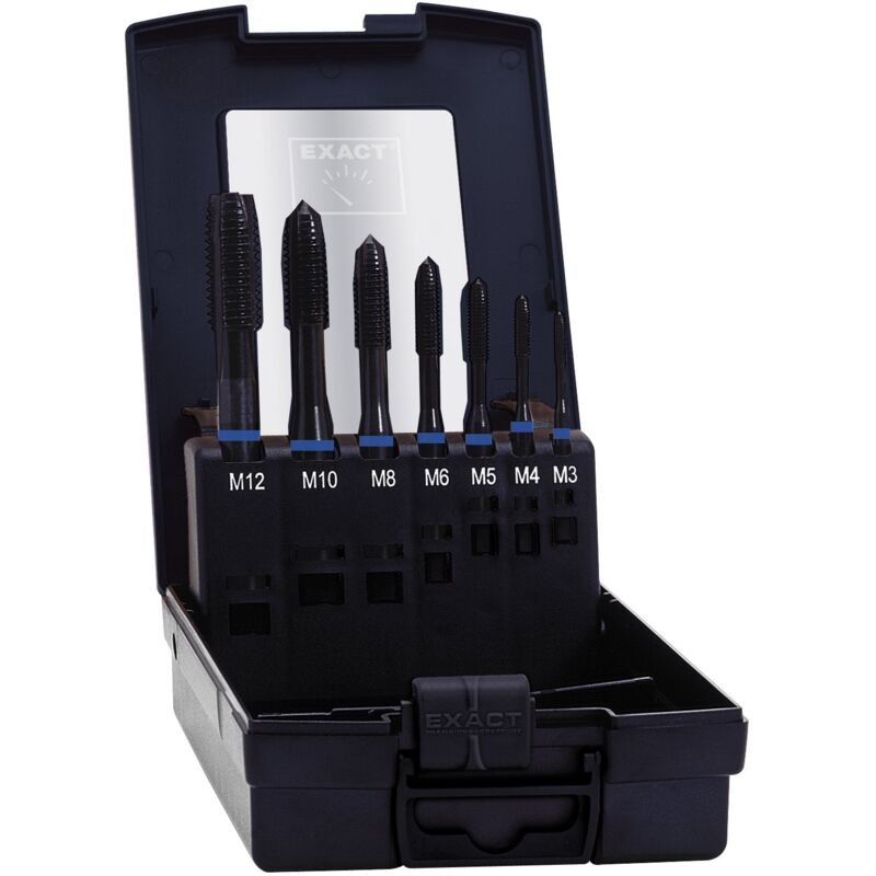 Exact 42305 - Set di punte per filettatura a macchina, 7 pezzi, taglio a destra, DIN 371, HSS-E, forma B, 1 set, dimensioni della confezione: 1 pezzo, qualità originale di Exact