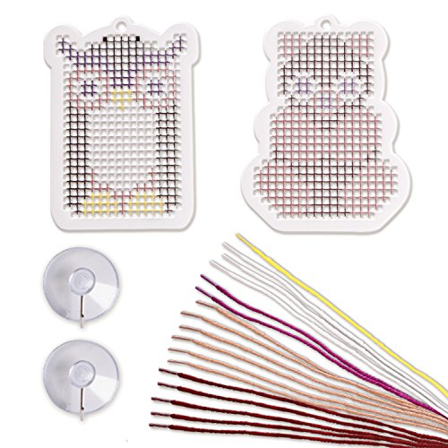 Contenuto: 2 Stick griglia a forma di animale con motivo gufo e volpe, prestampati 10 lacci colorati e 2 ventose per appendere immagini