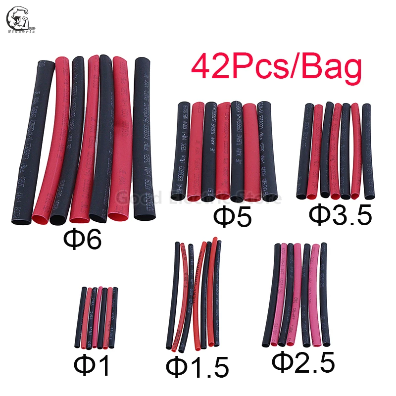 42PCS black red 2:1Heat Shrink Tubing Insulation Shrinkable Tube Sleeving Assortment Polyolefin Ratio Wrap Wire Cable Sleeve Kit