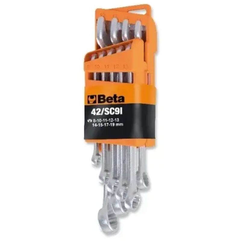L'assortimento chiavi combinate con supporto 9 Pz. Beta 42/SC9E è un pratico set di chiavi combinate ad uso universale e professionale.Questo pratico kit è dotato di apposito supporto in plastica per un pratico riconoscimento dell'utensile necessario e per mantenere in ordine la propria dotazione di utensili manuali.Composto da 9 Pezzi, questo assortimento comprende nello specifico:- 9x Beta 42 Chiavi combinate misure 8 - 10 - 11 - 12 - 13 - 16 - 17 - 18 - 19 mm L'immagine è illustrativa e potrebbe non rappresentare fedelmente il prodotto finale. Tipologia: Assortimento chiavi combinate Contenitore: Supporto Pezzi per confezione: 9 Dotazione: Chiavi combinate Beta 42 Utilizzo: Universale, Professionale Valigetta: No